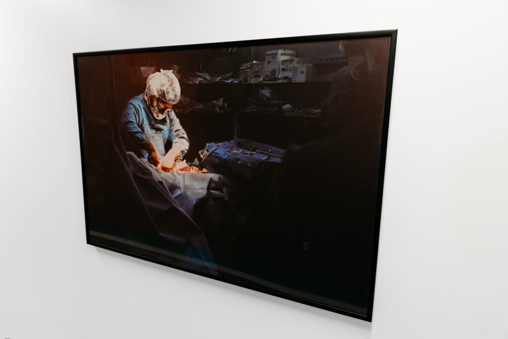 In 2002, Tricia Sellmer had the privilege of joining and documenting the work of Medicos in Action Group, a volunteer medical team that travelled to Guatemala on an annual basis. Part of the documentation included observing surgery performed by Dr. Gary Kinney. This image catches the reflection of a prolapsed uterus in Dr. Kinney’s glasses. Apparently, the patient had travelled three days to reach the medical clinic and had suffered the prolapsed uterus for many years.
