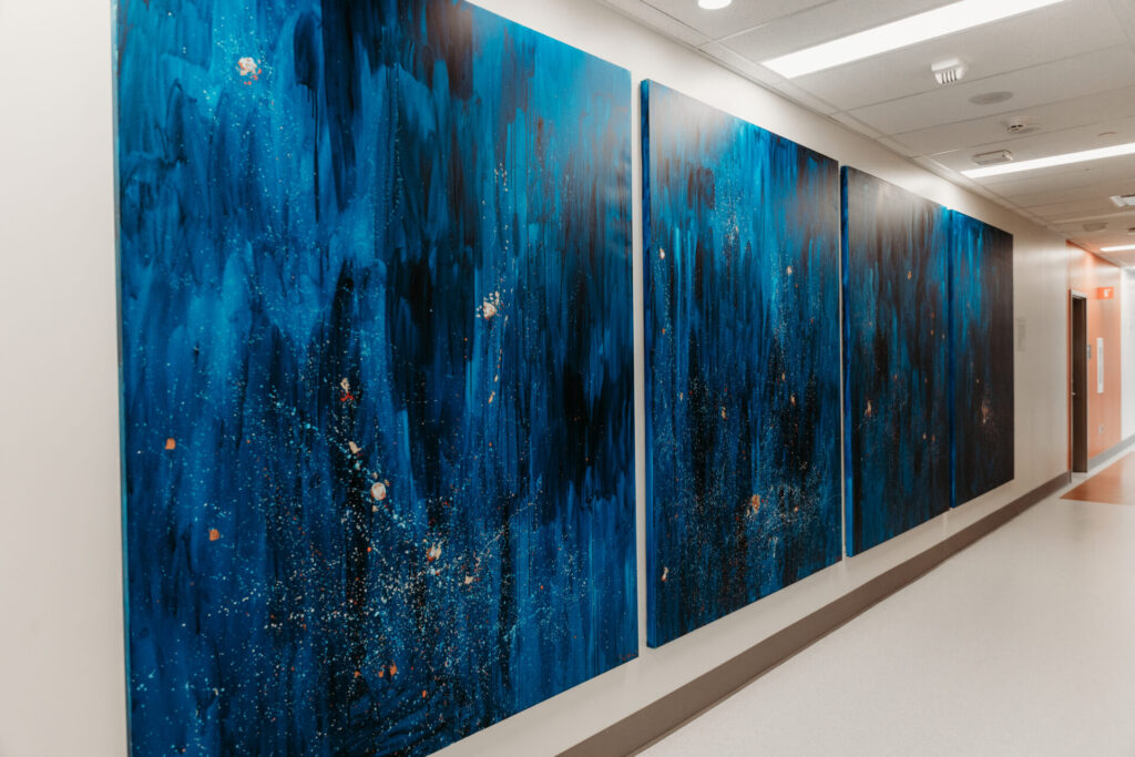 Hospitals can be stressful for families and support people. Art’s medicinal and restorative benefits for patients, visitors, and staff are more and more being recognized by research. Studies show that by improving and warming the hospital environment, art enhances the patient experience and speeds recovery. It also eases anxiety and stress for patients, families, and staff, and even provides moments of enjoyment and sharing.